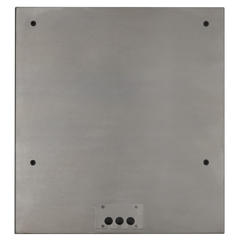 | Impermeabile con Grado di Protezione IP65 | Lo chassis monitor touch inox può essere lavato a getto o ad alta pressione, senza danneggiare le apparecchiature poste all’interno. |