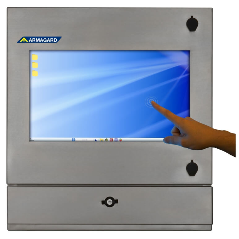 Lo chassis monitor touch inox impermeabile di Armagard è sigillato con grado di protezione IP65 e protegge da polvere, sporco, olio, urti fisici e furti. Offre un’eccellente sicurezza e protezione, rendendolo ideale per aree di lavaggio e stabilimenti con elevati requisiti igienici, che trattano prodotti medici e alimentari.